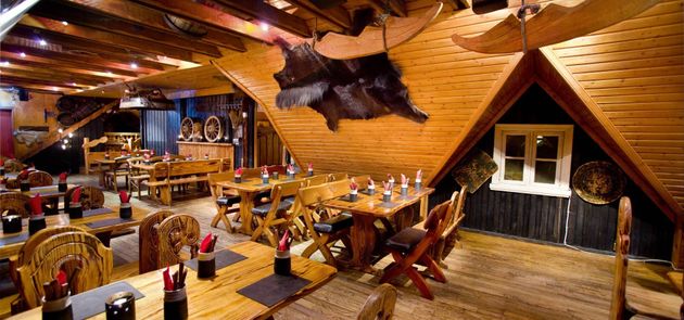 Fjaran restaurant – Valhalla is open daily from 18:00 – 22:00. We also open for groups at lunch time if requested. The house is built 1841 and is the second oldest house in town of Hafnafjörður. On the ground floor we comfortably seat 36 guests, and on the upper floor under the sloping roof, you can sit in a cozy barrel style corner and enjoy a cocktail before dinner or a dessert after dinner. On the second floor, we also have a small and cozy room with seats for 12 guests, and is ideal for small groups who want to have some privacy. A open doorway is between Valhalla and Fjörugarðurinn so guests can also enjoy all that Fjörugarðurinn has to offer, as well the special atmosphere of Valhalla. Valhalla is an elegant restaurant where the décor is made from a hundred years old snuff-and wine barrels. The walls downstairs are decorated with paintings directly on the walls, of Hafnarfjörður by Lukas Gucio Gordon and Æsir´s feast by Elísa Ósk Viðarsdóttir. Cozy and a different restaurant, worth visiting again and again.